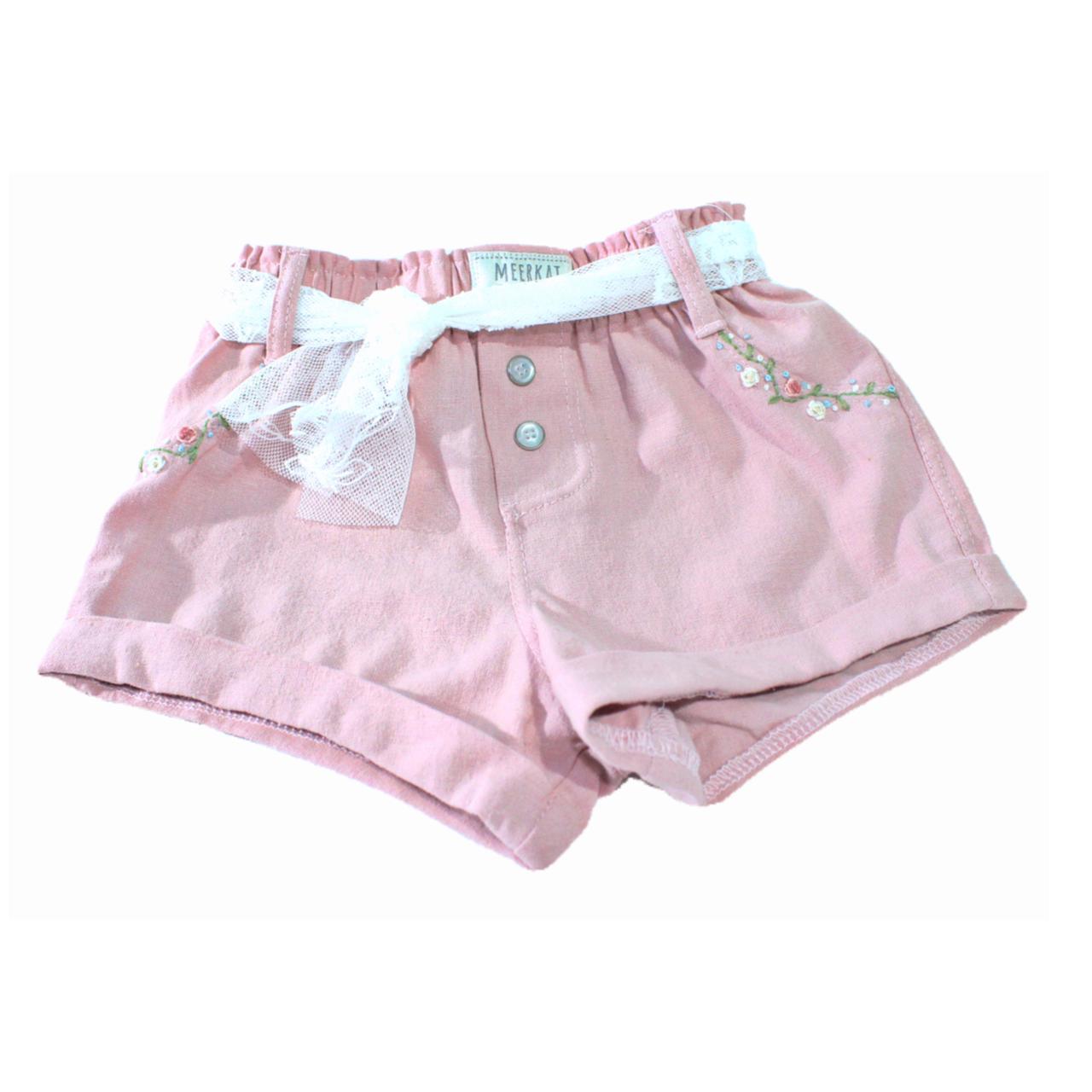Stylish linen short with elastic around the waist. Cute lac belt to in front. Hand embroidered roses and daisies on the faux pockets to give that elegant vintage look. The lace band can be removed. It is kept in place with two tabs in front and three tabs at the back. Add your own belt to match with any outfit. Lovely to wear with lace top or cotton top to give it that special look.