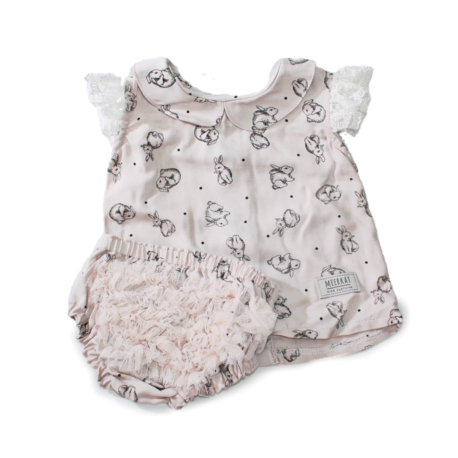 Beautiful soft pink rayon fabric with bunny print frilled bottom to wear with tops or dresses.